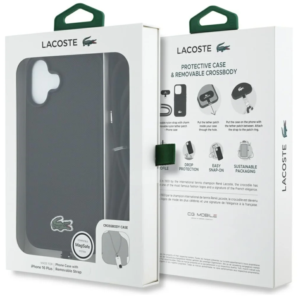 Stílusos megjelenés: A tok érdekes textúrával rendelkezik, amely nemcsak szemet gyönyörködtető, hanem kellemes tapintási élményt is nyújt. A finom felületkialakítás nemcsak esztétikai szempontból, hanem funkcionálisan is kiváló, biztonságos fogást és kényelmes használatot kínál. A kollekciót a Lacoste márka ikonikus krokodilja díszíti, amely tökéletesen tükrözi a márka szellemét, ötvözve az eleganciát a sportos stílussal.