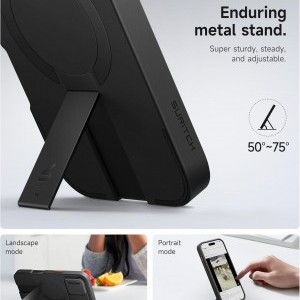 Élvezze a kényelmes médiafogyasztást vagy videóhívásokat a beépített, strapabíró fém állvánnyal. Ez a szuper stabil és állítható mechanizmus 50° és 75° közötti szögben rögzíthető, és tökéletes mind fekvő (landscape), mind álló (portrait) módban történő használatra. Olvasson, nézzen videókat, vagy dolgozzon a telefonján a legkényelmesebb szögben, kezei szabadon maradnak.