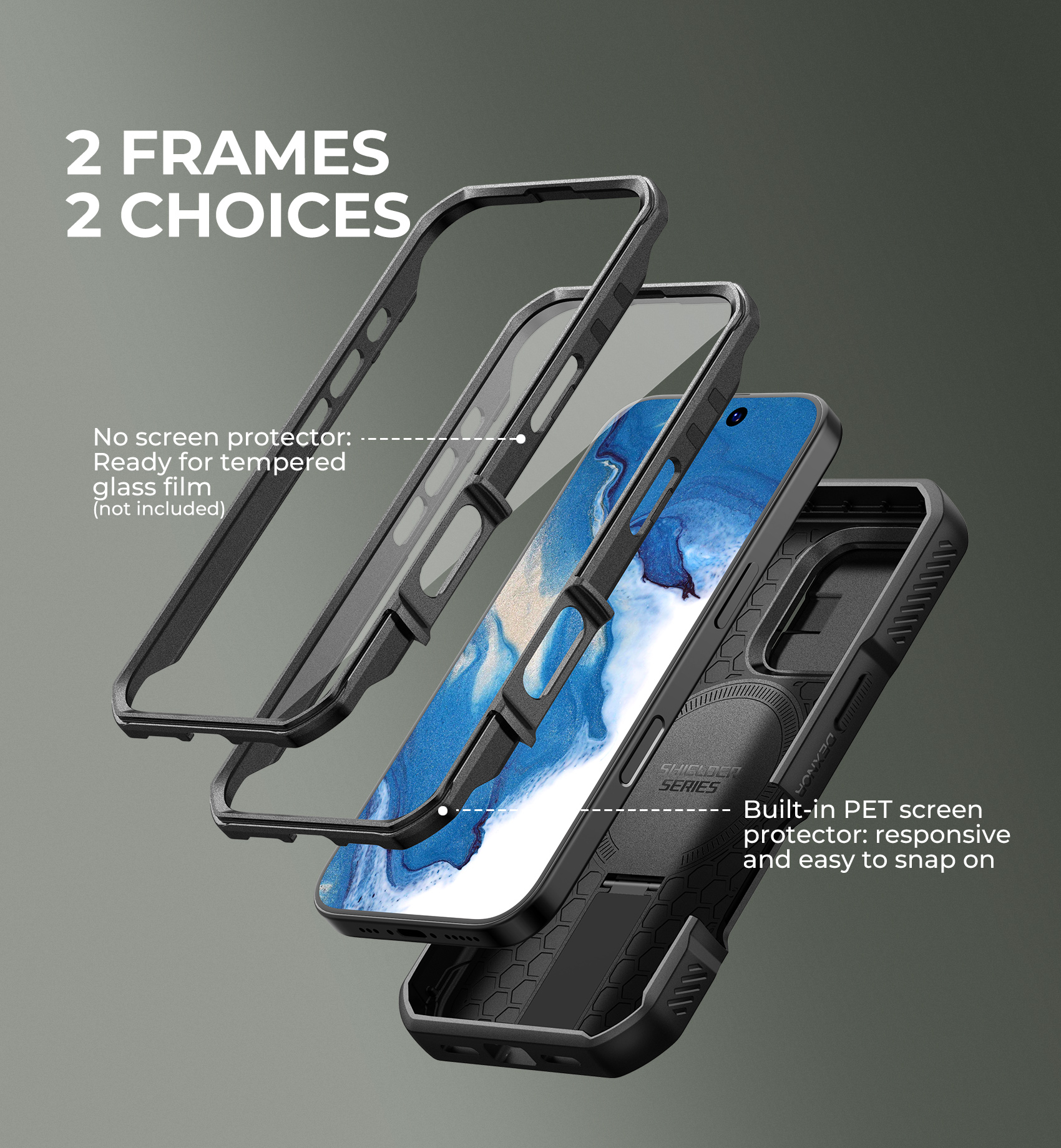 - A második keret lehetővé teszi, hogy saját edzett üvegfóliáját (nem tartozék) használja, ha személyre szabottabb megoldásra vágyik.