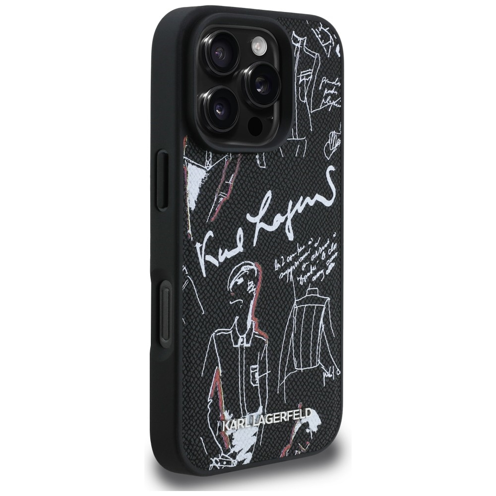 iPhone 16 Pro Karl Lagerfeld Grained Pattern & Logo MagSafe fekete tok