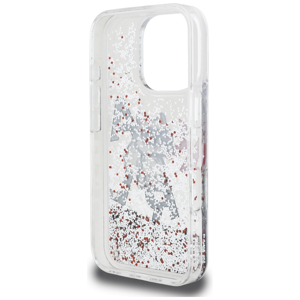 iPhone 16 Pro Karl Lagerfeld Liquid Glitter Choupette Logo átlátszó tok