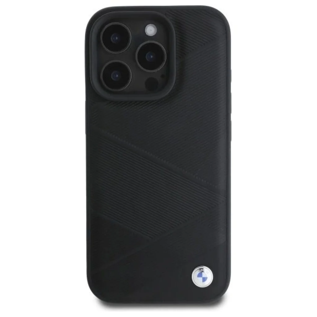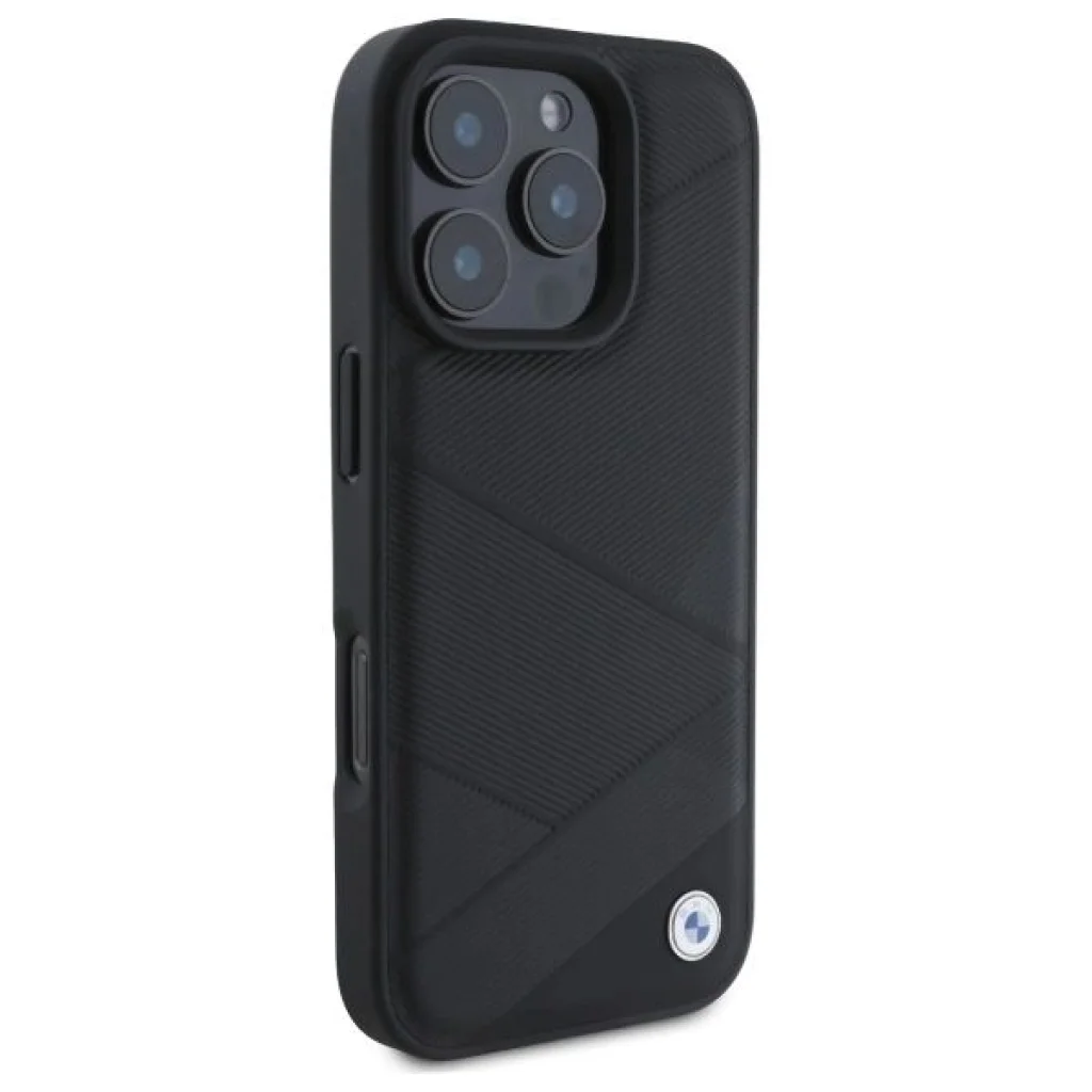 iPhone 16 Pro Max 6.9" fekete/fekete BMW Sign Leather Crossing Lines Pattern tok BMHCP16X23RCGPK