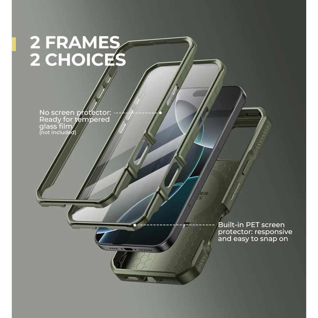 - Kettős előlapi keret opció: Válassz az előre telepített, érzékeny PET képernyővédővel ellátott keret (mely véd a karcolások, por és fröccsenések ellen) és az egyedi üvegfóliádhoz használható keret között a személyre szabott védelem érdekében.