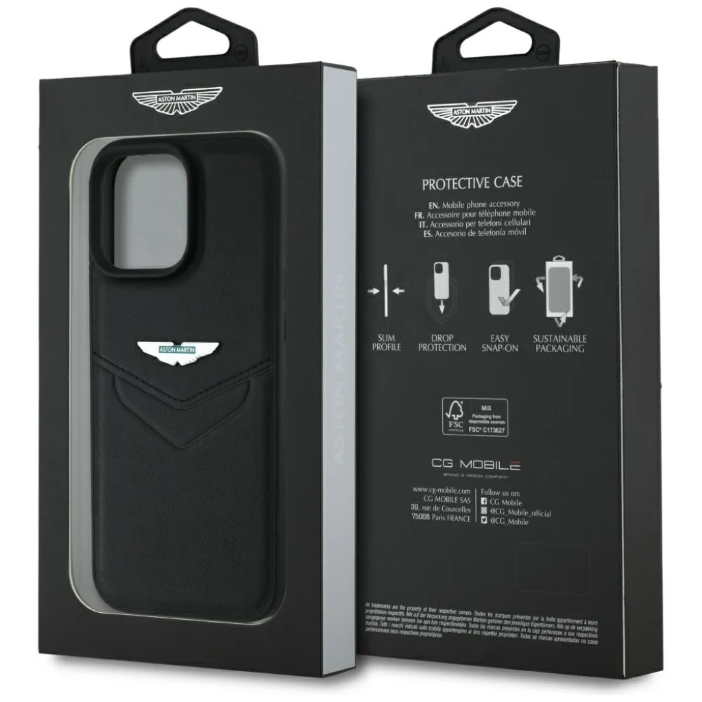 Egyedülálló dizájn: A tok külső rétege kiváló minőségű valódi bőrből készült, amely sima és dombornyomott textúrákat ötvöz. Ez a kombináció elegáns és divatos megjelenést kölcsönöz neki. A nagy, fém Aston Martin logó növeli a kollekció hitelességét és a tok luxus jellegét.