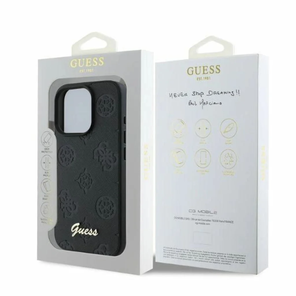 A Guess 4G Classic egy exkluzív védőtok sorozat, amely kivételes funkcionalitást és stílusos, egyedi dizájnt ötvöz. Ezt a kollekciót azok számára tervezték, akik nemcsak telefonjuk biztonságát, hanem elegáns megjelenését is értékelik. A sorozat minden egyes tokja a jó ízlés kifejezése, kiváló minőségű kidolgozással és egyedi esztétikával. Adj hozzá stílust és sikket! Ez az elegáns kollekció még a legigényesebb és legkifinomultabb ízlést is lenyűgözi. A tokok felső rétege finom ökológiai bőrrel van borítva, amit egy magas minőségű 4G minta díszít, ezzel adva neki kifinomult jelleget és sikket. Ezt az egyedülálló kollekciót a gyönyörű arany Guess márkajelzés egészíti ki, amely igazolja a termékek kiváló minőségét és eredetiségét, amiért ez a híres márka felel. Figyelem a részletekre Gondosan kiválasztott méretei révén a tok hatékonyan elnyeli az eséseket, miközben teljes hozzáférést biztosít a portokhoz és gombokhoz. A tok oldalai elég rugalmasak ahhoz, hogy könnyű legyen a fel- és leszerelése, de mindenekelőtt tökéletesen védik a készülék keretét az ütések és esetleges sérülések ellen. A kissé megemelt külső élek védik a telefon képernyőjét a sérülésektől, és a kamera lencséje körüli megemelt élek védik az optikát a töréstől vagy karcolódástól. A tok a Guess márka licenc alatt készült. Technikai adatok Kollekció: 4G Classic Típus: Hardcase Anyag: TPU/PC/Öko bőr Szín: Fekete Kompatibilitás: iPhone 16 Pro Max 6.9"