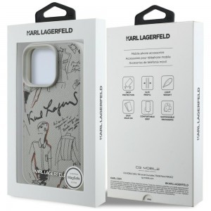 Ez az exkluzív védőtok a neves Karl Lagerfeld márkától a elegancia és az egyedi stílus ötvözete. Magas minőségű, szemcsés textúrájú öko-bőrből készült, amely különleges karaktert és tartósságot kölcsönöz neki. A felület eredeti rajzokkal és Karl Lagerfeld aláírásával van díszítve, az alján pedig a márka logója található, amely kiemeli a kollekció hitelességét.