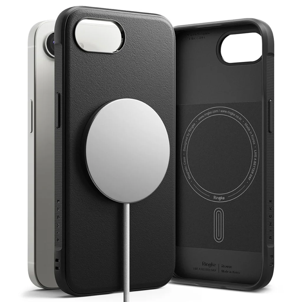 A Ringke cég Onyx Magnetic Magsafe sorozatának tokja puha és tartós hőre lágyuló műanyagból készül, amelyet a széleken további megerősítéssel láttak el, hogy a lehető legjobban védje a készüléket. Az enyhén megemelt tokforma a kamera és a képernyő körül megvédi azt a karcolásoktól, megemelve a telefont a sík felület fölé. Gombvédőket, portkivágásokat és nyakpántot tartalmaz.