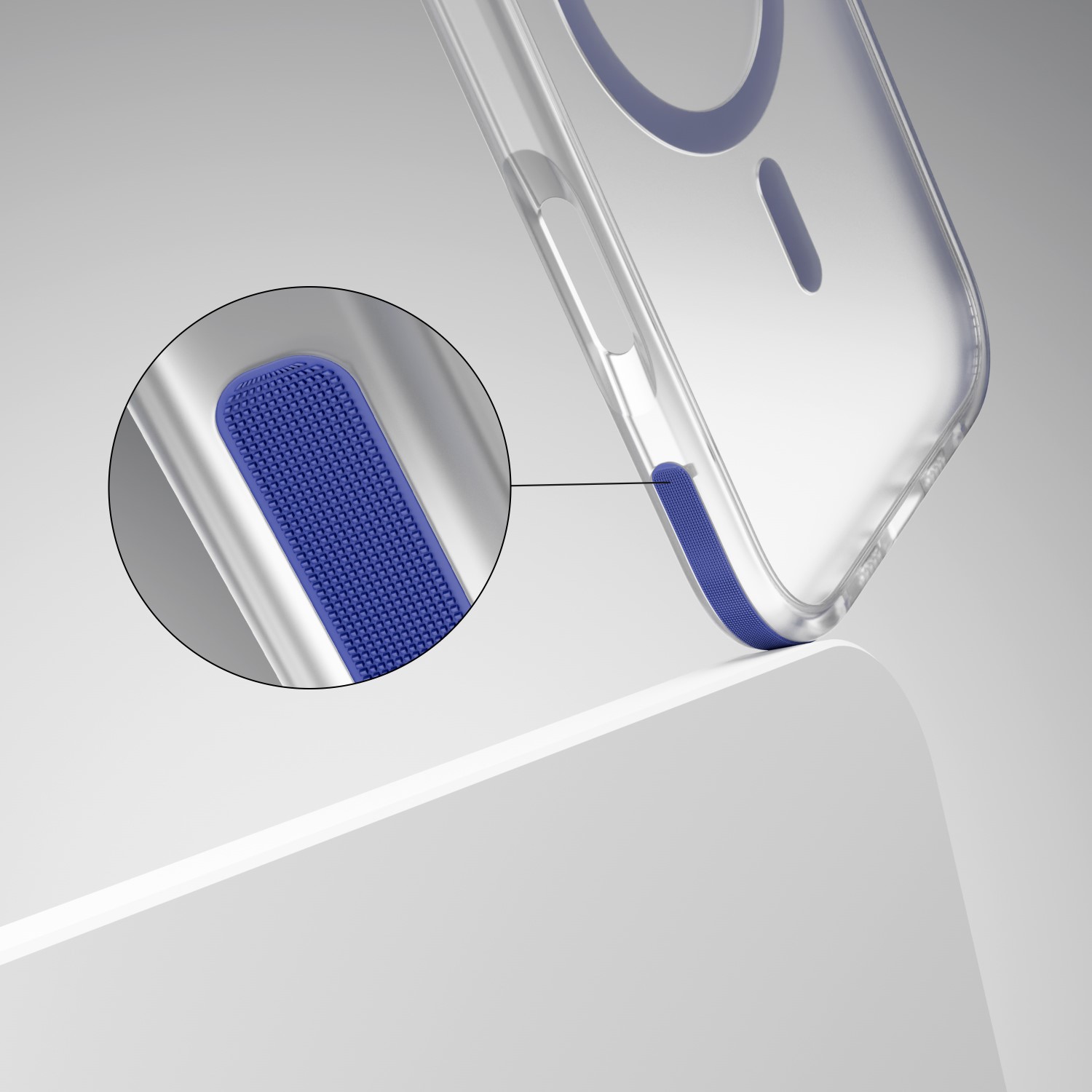 A dizájn tartalmaz egy kiemelkedő kamera szigetet, amely létfontosságú a lencsék karcolásoktól és törésektől való megóvásához. A 2300 Gs mágnes, amely színben illeszkedik a burkolat többi részletéhez, lehetővé teszi a kényelmes MagSafe kompatibilitást, megkönnyítve a kompatibilis töltők és kiegészítők használatát.