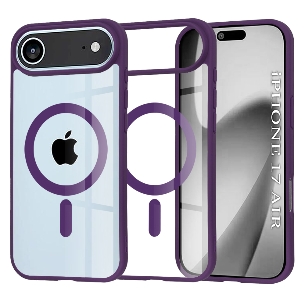Ez a különleges tok áttetsző hátlappal rendelkezik, amelyen keresztül tökéletesen láthatóvá válik az iPhone 17 Air eredeti szépsége és az ikonikus Apple logó. A tok széleit és a beépített MagSafe gyűrűt élénk lila szín borítja, ami modern és letisztult megjelenést kölcsönöz készülékének. A MagSafe technológiának köszönhetően az összes MagSafe-kompatibilis tartozék, mint például a vezeték nélküli töltők vagy kiegészítők, könnyedén és stabilan rögzíthetők, biztosítva a zavartalan használatot.