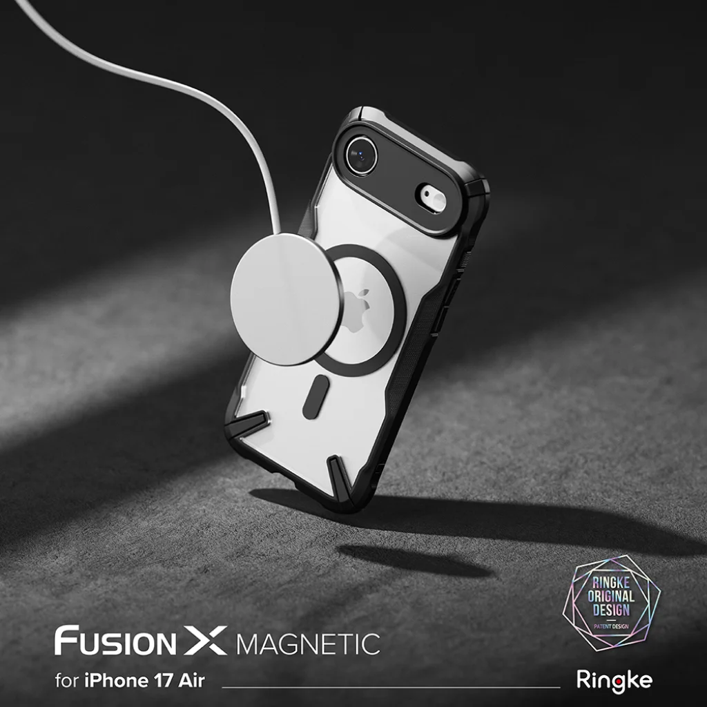 Az iPhone 17 Air - Ringke Fusion X MagSafe - Fekete tok a tökéletes választás azok számára, akik kompromisszumok nélküli védelmet és a MagSafe technológia minden előnyét szeretnék élvezni. Ez a hibrid tok ötvözi a strapabíró anyagokat az elegáns, átlátszó designnal, miközben biztosítja a telefon zökkenőmentes töltését és kiegészítőinek használatát.