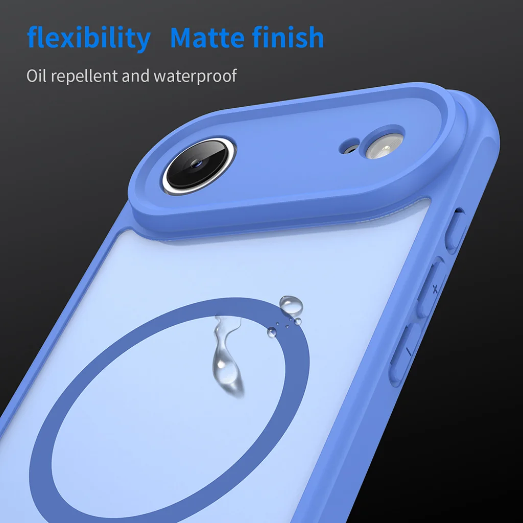 - Éteri kék és áttetsző elegancia: Az égkék keret gyönyörűen harmonizál az áttetsző, matt felületű hátlappal, amely diszkréten engedi átlátszani telefonja eredeti színét, miközben modern, elegáns megjelenést kölcsönöz. A "HaloFrost II" elnevezés is a jeges, áttetsző hatásra utal, amely fél-átlátszó, "frosted" felületet eredményez.