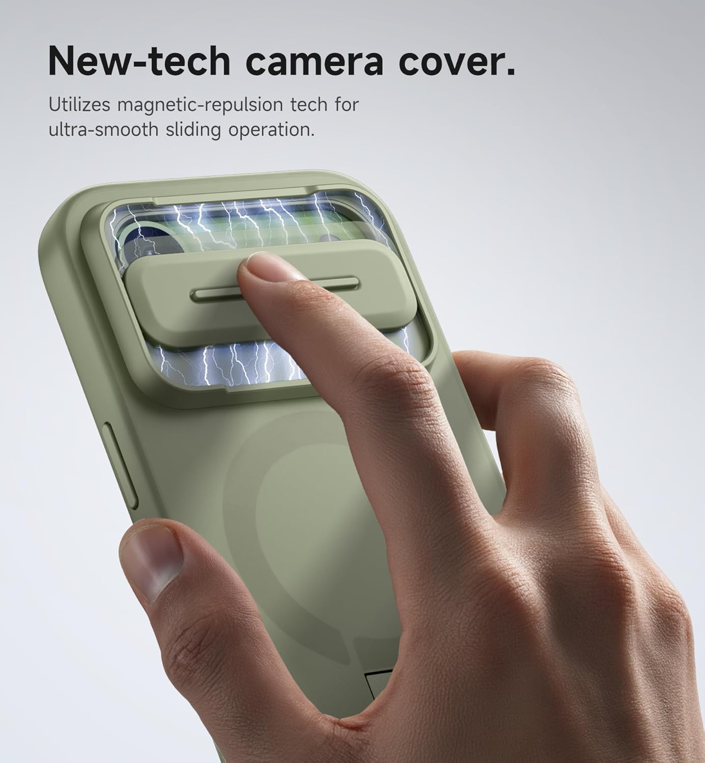 A Suritch tok egyik legkiemelkedőbb jellemzője az újfajta technológiával készült kameravédő. Ez a védőfedél mágneses taszítás elvén működik, garantálva az ultra-sima és könnyed csúsztatást minden egyes alkalommal. Védje meg telefonja értékes kameráját a karcolásoktól és ütődésektől, miközben a fedél egyetlen mozdulattal eltolható, amikor fotózni szeretne.