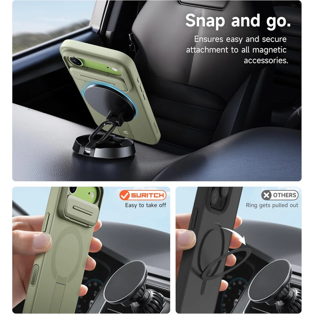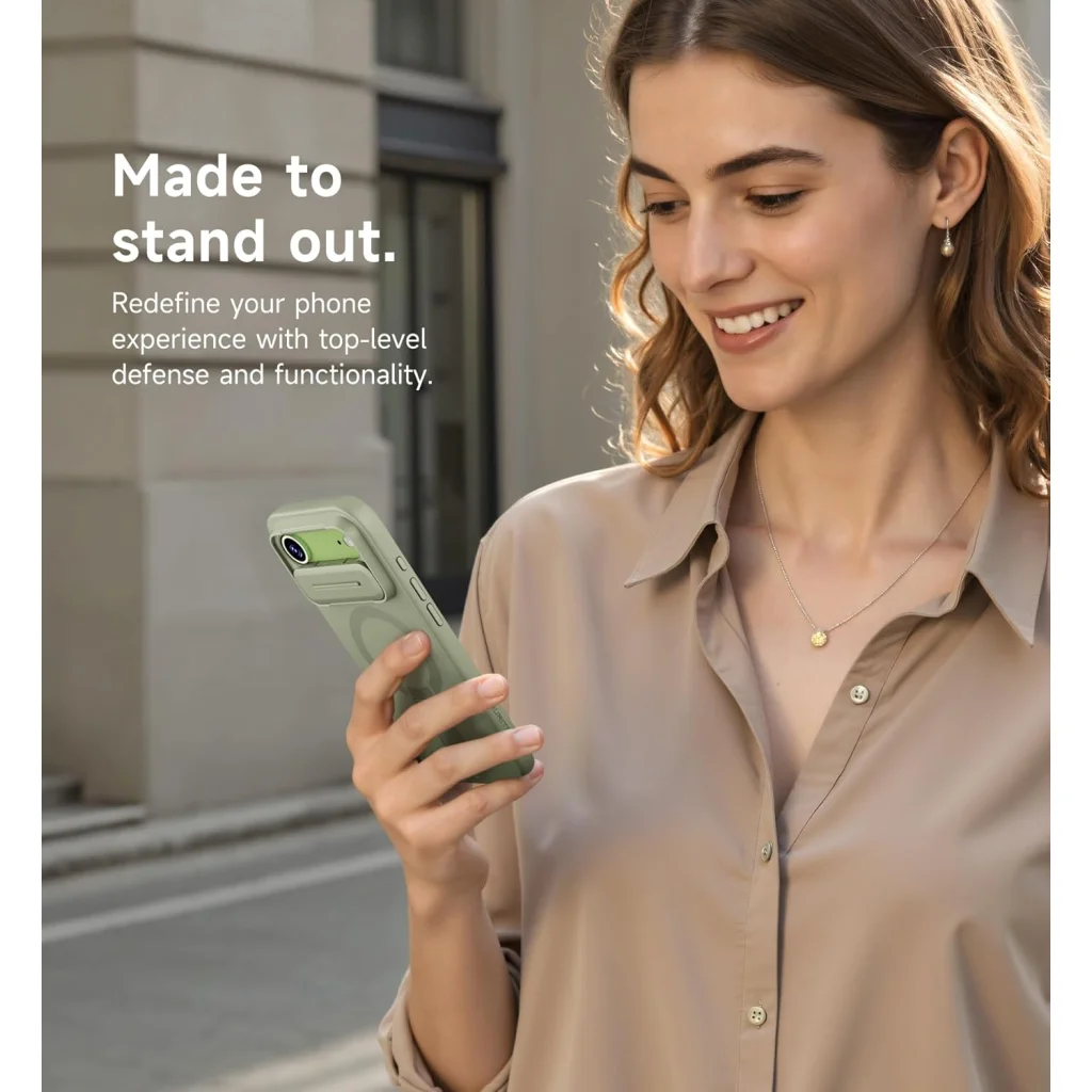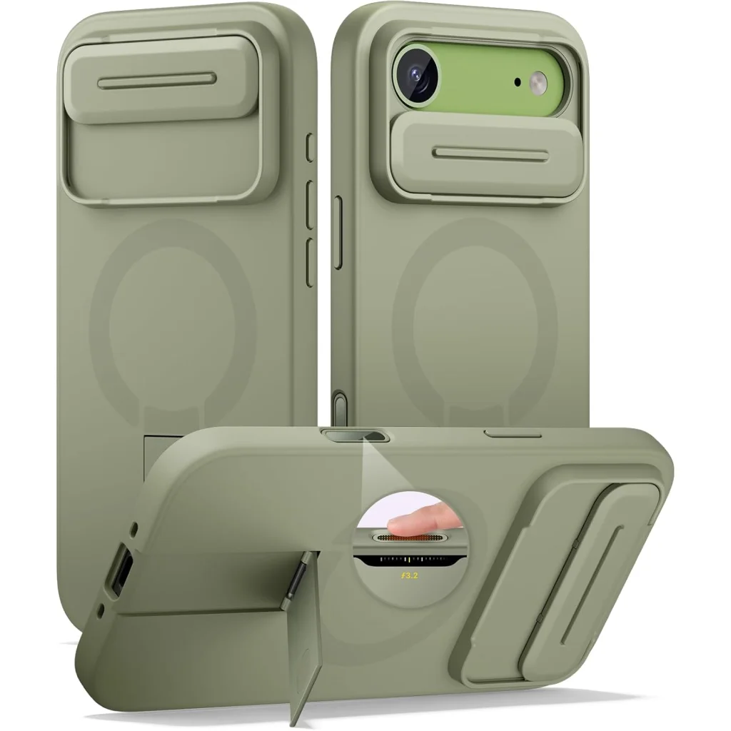 Védje iPhone 17 Air készülékét a Suritch prémium minőségű tokjával, amely a legmagasabb szintű védelmet nyújtja anélkül, hogy kompromisszumot kötne a funkcionalitásban és a stílusban. Ez a gyönyörű zöld tok nem csupán ütésálló, hanem innovatív MagSafe kompatibilitással, precíz kameravédővel és praktikus, kihajtható állvánnyal is rendelkezik, hogy minden helyzetben kényelmesen használhassa telefonját.