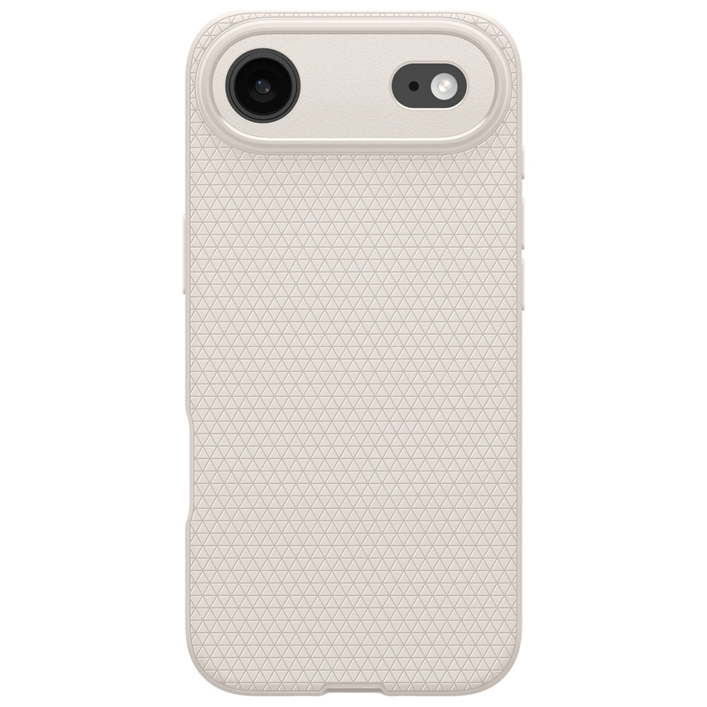 A Spigen Liquid Air titán tok tartós és rugalmas TPU (termoplasztikus poliuretán) anyagból készült, amely kiválóan ellenáll az ütéseknek és a karcolásoknak. A tok hátlapján és oldalain végigfutó egyedi, geometriai mintázat nem csupán esztétikai élményt nyújt, hanem jelentősen javítja a fogást, csökkentve ezzel a véletlen leejtések esélyét. A precízen kidolgozott, csúszásmentes textúra biztosítja, hogy iPhone 17 Air készüléke biztonságosan feküdjön a kezében.