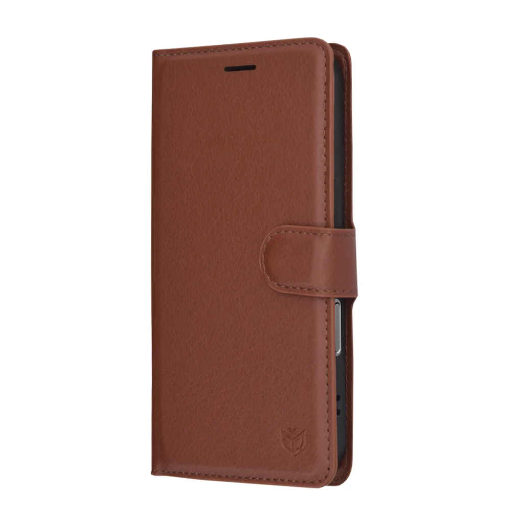 - Prémium anyaghasználat: A tok kiváló minőségű, puha tapintású barna bőrből készült, amely időtálló eleganciát és kellemes fogást biztosít.