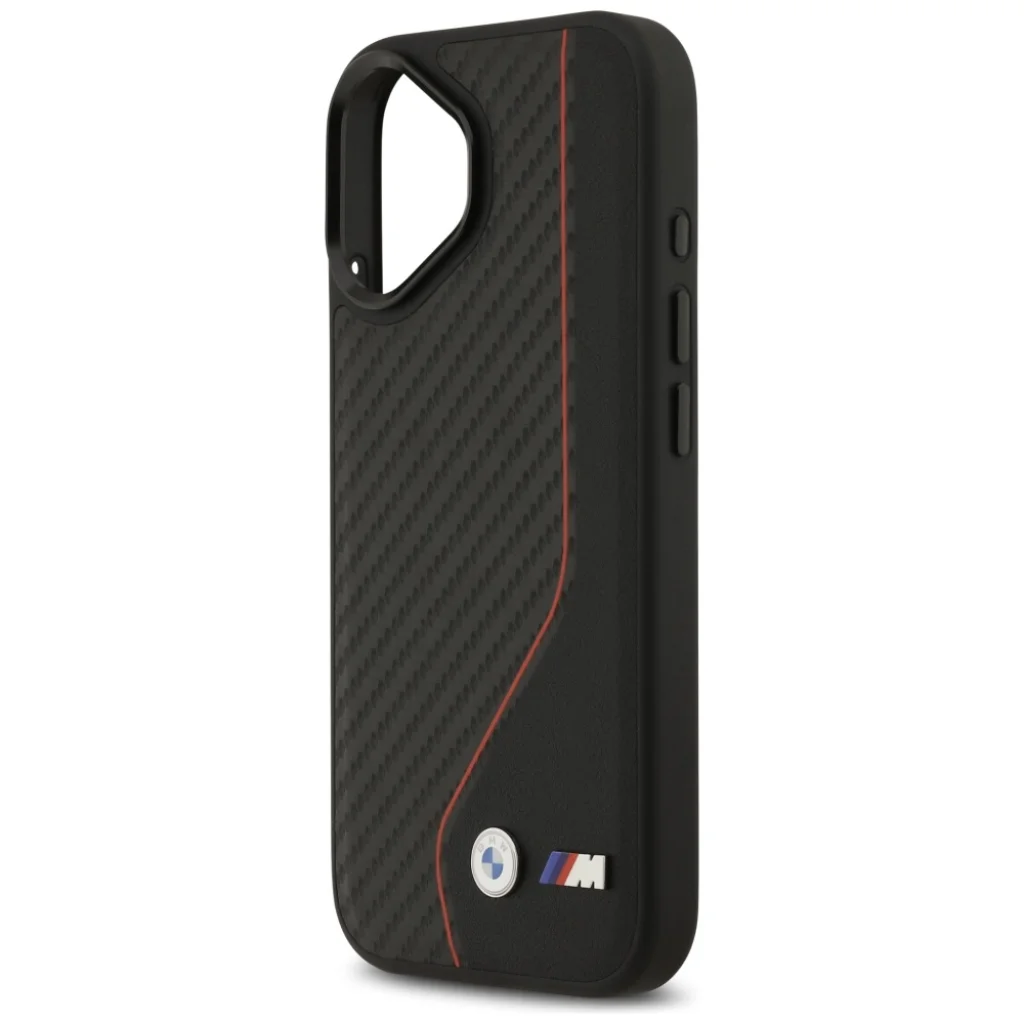 Egyedi design és kiváló minőség jellemzi. Az M Carbon Line & Logo tok tartósságot kombinál sportos karakterrel. A felület öko-bőr és karbon motívum kombinációjával van borítva, amelyet a BMW M stílusa által ihletett kontrasztos piros vonal egészít ki. Az egész dizájn egy fémből készült BMW logóval van befejezve, amely megerősíti a termék eredetiségét és hangsúlyozza annak presztízsét. A kamera keret és a gombok fekete színben maradnak, elegánssá és koherenssé téve a tokot.