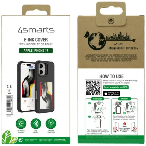 A 4smarts E-Ink tok NFC-kijelzővel és Qi2 kompatibilitással nemcsak védelmet, hanem funkciókat is kínál. Az egyszerű, fekete design miatt a tok alkalmas mind szakmai, mind magánjellegű használatra. A tok mágneses gyűrűvel van ellátva, amely kompatibilis a MagSafe vezeték nélküli töltővel, biztosítva a gyors és egyszerű feltöltést. A tokba épített mágnesek tökéletesen illeszkednek a felhasználó telefonjához és erős rögzítést biztosítanak a MagSafe töltőhöz.