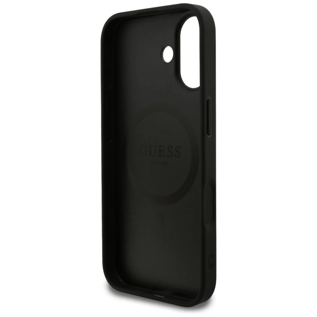 A Guess 4G Ring Classic Logo MagSafe tok a kifinomultság megtestesítője. A fekete színű, jellegzetes 4G logó mintázattal díszített felület textúrája kellemes tapintást biztosít, és egyedülálló, luxus érzetet kölcsönöz készülékének. Az elegáns, arany színű "GUESS" felirat diszkréten helyezkedik el a MagSafe gyűrű közepén, kiemelve a márka prémium minőségét és stílusát, amely a Guess Est. 1981 örökségét idézi.