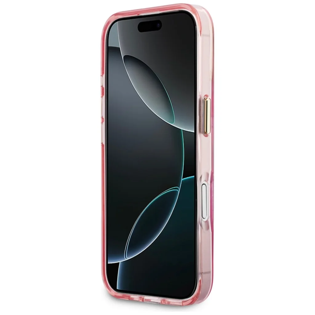- Exkluzív Karl Lagerfeld design: Az áttetsző rózsaszín hátlapon helyet kap a jellegzetes "Karl" felirat, elegáns, kézírásos stílusban, kiemelve a márka azonnal felismerhető identitását.