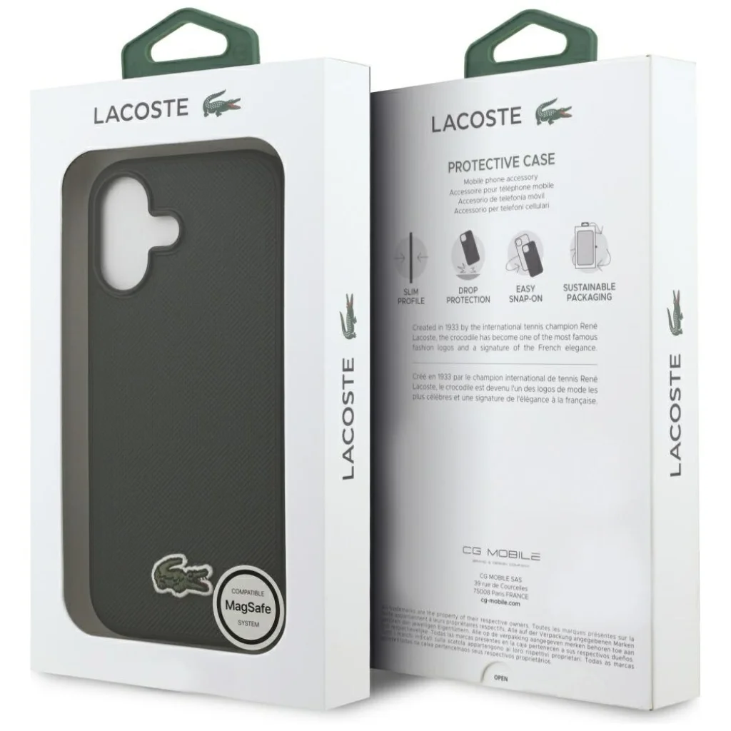 Stílusos megjelenés: A tok érdekes textúrájával tűnik ki, amely nemcsak szemet gyönyörködtető, hanem kellemes tapintást is nyújt. Az alig látható felületi kidolgozás miatt a tok esztétikus és funkcionális is, biztos fogást és kényelmes használatot kínál. A kollekciót az ikonikus krokodil képe díszíti, amely tökéletesen megragadja a Lacoste márka szellemét, ötvözve az eleganciát a sportos stílussal.