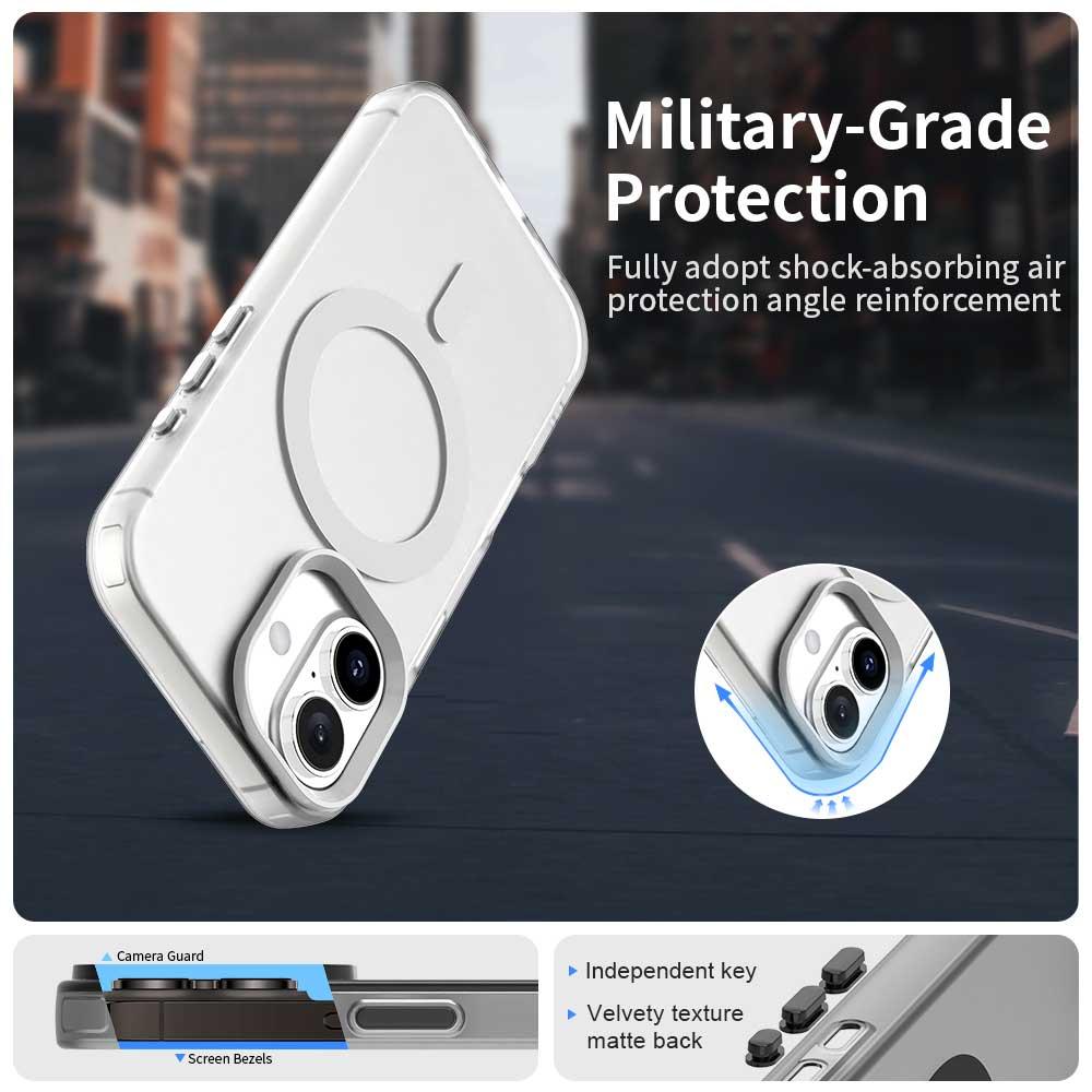 - Beépített MagSafe gyűrű: A tokba integrált MagSafe mágneses kialakítás tökéletes illeszkedést és rendkívül erős tapadást biztosít a MagSafe tartozékokhoz.