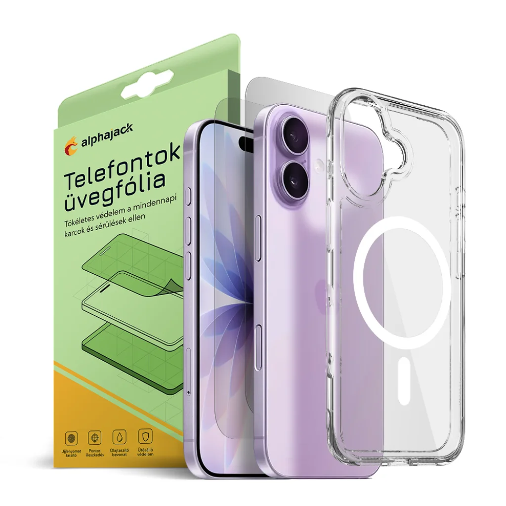 Óvd meg iPhone 17 készülékedet a mindennapi sérülésektől és karcolásoktól az Alphajack prémium védelmi csomagjával! Ez a szett egy áttetsző, MagSafe kompatibilis tokot és két darab kiváló minőségű HD 9H keménységű üvegfóliát tartalmaz, amelyek együttesen biztosítják a telefonod teljes körű védelmét. Ne elégedj meg kevesebbel, mint a tökéletes védelemmel!