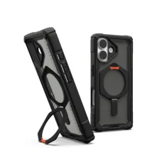 Elegáns tok fémkerettel a telefon fokozott védelméért. A vonzó textúra és a kellemes tapintású anyag stílusos tokot hoz létre, amely kihangsúlyozza a készülék modern tervezését. A puha velúr anyag a belső és tartórésznél mindkét oldalról megvédi a készüléket a sérülésektől és karcolásoktól. A fogantyú rugalmas szilikonból készült és kivágásokkal rendelkezik. Az alumínium keret a széleken megerősíti a tokot és még jobban védi a készüléket. A fém és az eredeti anyag kombinációja egyedi és modern kompozíciót hoz létre, melynek köszönhetően a készülék stílusos és elegáns megjelenést kap. A tok egy kis zsebbel is rendelkezik praktikus dokumentumok vagy bankjegyek számára. A tok egy vízszintes talpból áll, filmek vagy fényképek nézéséhez. Egy erős mágnes biztosítja a tok könnyű zárását és nyitását, valamint megakadályozza a véletlenszerű kinyitást.