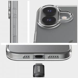 Figyelmet fordítottak minden részletre. A tok továbbfejlesztett TPU anyagból készült, amely ellenáll a sárgulásnak és az elszíneződésnek, így tökéletes átlátszóságát hosszabb ideig megőrzi. A belső mikromintázat, finom pontokkal, megakadályozza a „nedves folt” hatást és a zsíros filmeket, amelyek tönkretehetik az átlátszó tokok esztétikáját. Az összkép finom és modern, kiemelve az eszköz természetes dizájnját.