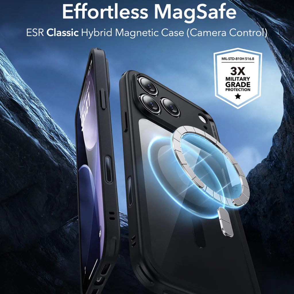 Az ESR Klasszikus Hibrid HaloLock tok az iPhone 17 Pro készülékhez a prémium védelem és a modern funkcionalitás tökéletes ötvözete. Ez az átlátszó hátlapú, fekete keretes tok nem csupán megóvja telefonját a mindennapi sérülésektől, hanem a beépített HaloLock technológiával a MagSafe ökoszisztéma minden előnyét is biztosítja.