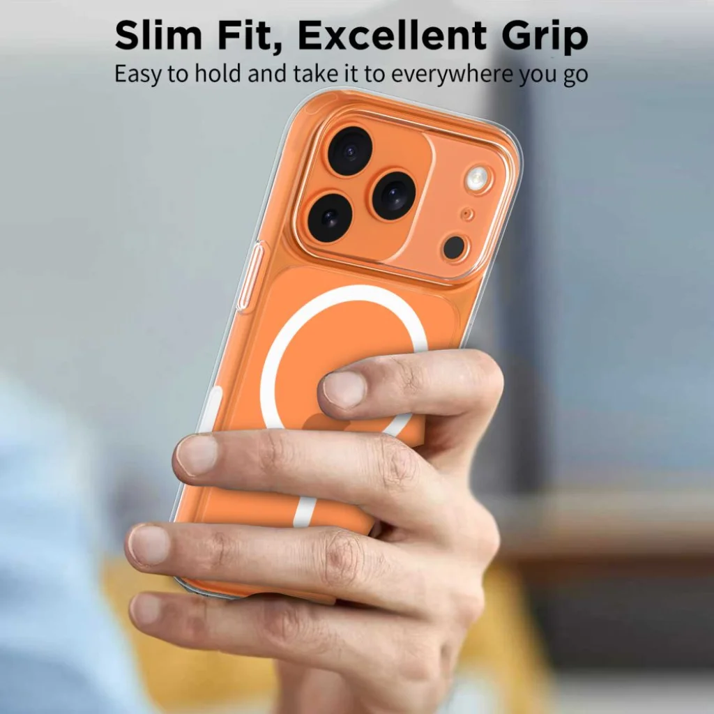 A könnyed, hibrid kialakítás átlátszó anyagokkal kiemeli a telefon eredeti designját, míg az integrált MagSafe modul biztosítja a tok teljes kompatibilitását a mágneses kiegészítőkkel.