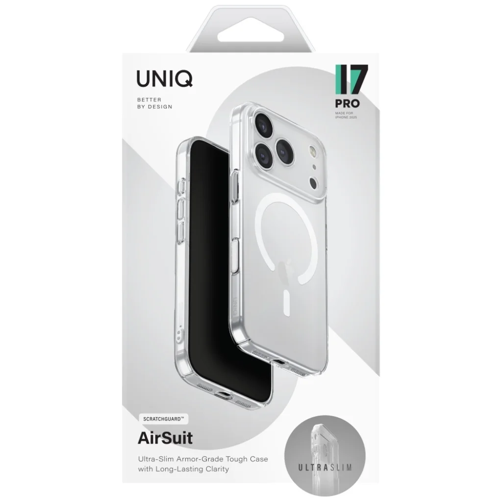 Uniq Airsuit Magclick Charging tok A Uniq egy olyan márka, amely eleganciát, funkcionalitást és modern technológiákat ötvöz a mobil eszközök védő kiegészítőinek létrehozásában. A Uniq termékei precíz kidolgozásukról, magas minőségű anyaghasználatukról és részletgazdagságukról ismertek. Kivételes védelmet nyújtanak, miközben dizájnos megjelenésükkel kiegészítik a modern eszközök esztétikáját. Tokjaik és kiegészítőik a stílus és megbízhatóság tökéletes kombinációi, biztosítva a legmagasabb szintű biztonságot. PRECÍZ ILLESZKEDÉS ÉS TELJES FUNKCIONALITÁS A tokot a modern felhasználók kényelmére tervezték, ötvözve a funkcionalitást a kivételes ergonómiával. Ultravékony kialakítása karcsúan tartja a telefont, és kényelmes fogást biztosít, miközben teljes hozzáférést ad minden porthoz és gombhoz a kényelmes használat érdekében. Beépített haptikus gombok garantálják a magas érzékenységet és a kamerafunkciók kényelmes vezérlését. MAGAS MINŐSÉGŰ ANYAGOK A Uniq Airsuit Magclick Charging tok tartós PC anyagból készül, amely védi az egész eszközt – a keretet, hátlapot és egyéb alkatrészeket – anélkül, hogy terjedelmesebbé tenné. A polikarbonát hátlap védi a hátlapot a karcolásoktól, és enyhén kiemelt élekkel rendelkezik a képernyő és a kamera lencse körül, minimalizálva a sérülés kockázatát. Vezeték nélkül töltheti a telefonját! A tok egy mágneses gyűrűt tartalmaz, amely kompatibilis a MagClick induktív töltőkkel, biztosítva a gyors és egyszerű töltést. A beépített mágnesek tökéletesen illeszkednek a felhasználó telefonjához, és biztosítják az erős kapcsolatot az eszköz és a töltő között. Technikai adatok Márka Uniq Kollekció Airsuit Magclick Charging Típus Keménytok Anyag PC Szín Átlátszó Kompatibilitás iPhone 17 Pro