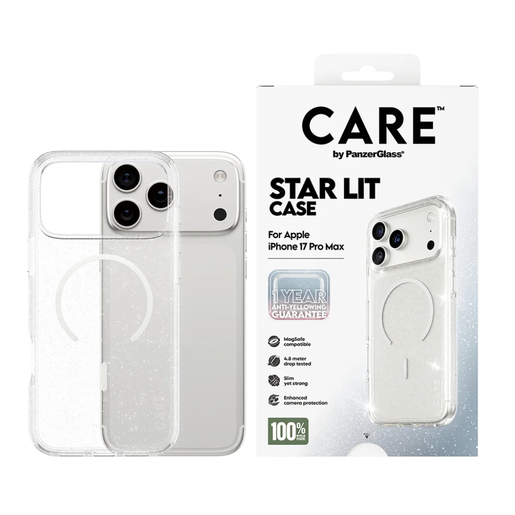 Termék leírás iPhone 17 Pro Áttetsző PanzerGlass® - CARE Flagship Urban Explorer Star Lit White MagSafe tok