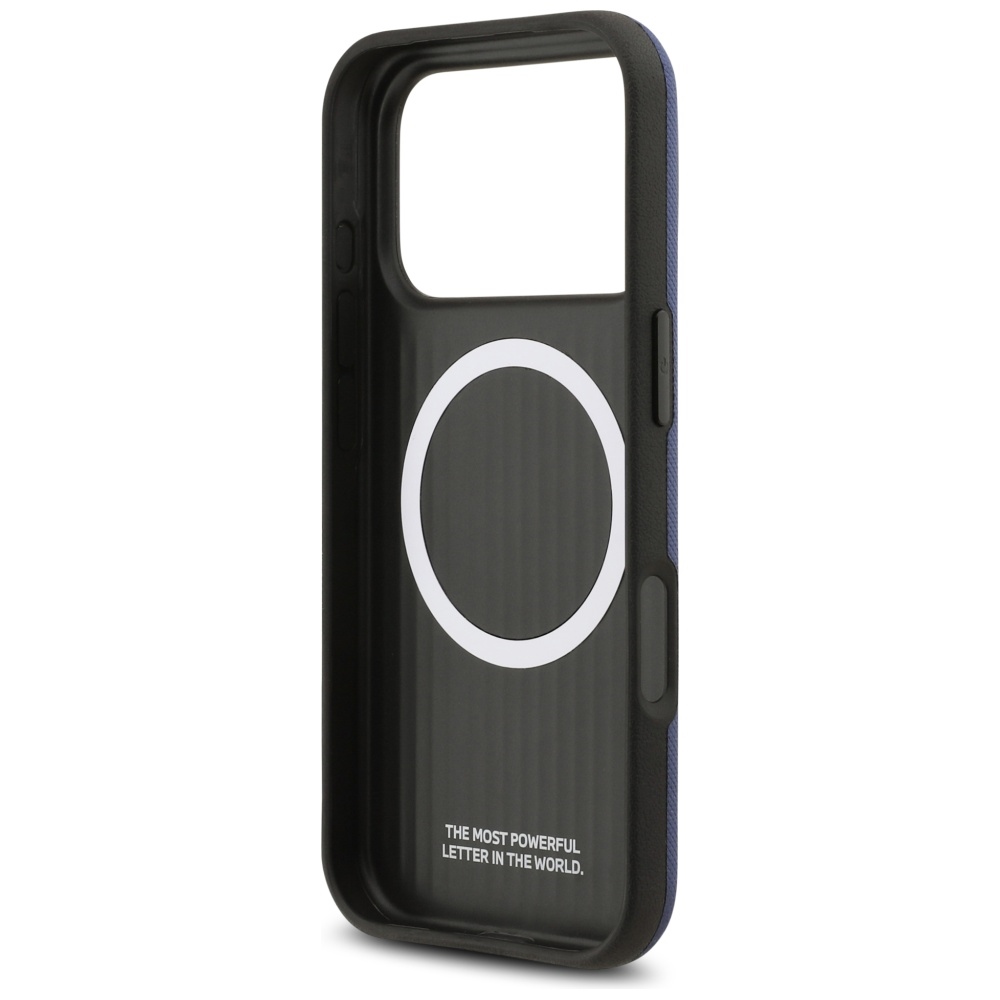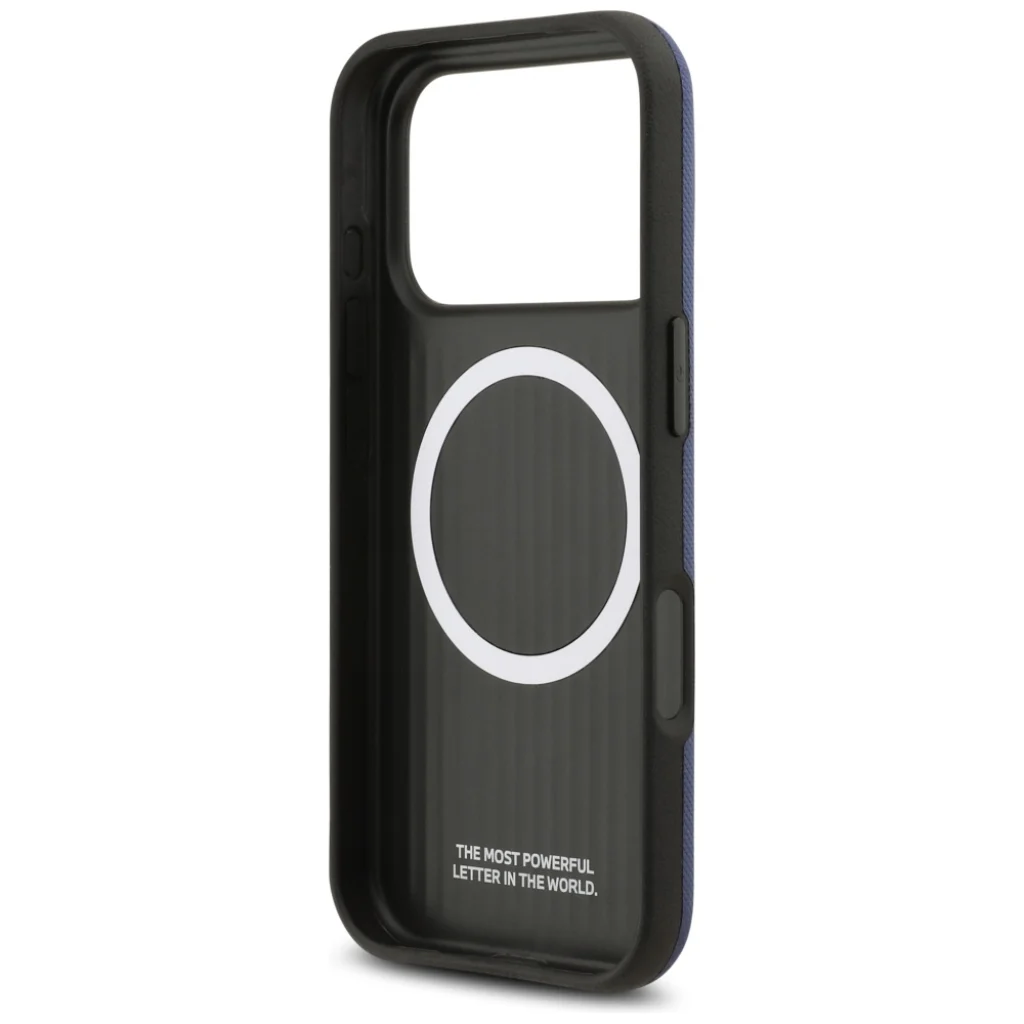 A tokot a BMW M autók eleganciája és teljesítménye inspirálta. Külső felülete finom, texturált anyagból készült, amely nemcsak kényelmes fogást biztosít, hanem egyedi és kifinomult megjelenést is kölcsönöz a készüléknek. A hátlapon diszkréten, mégis markánsan helyezkedik el a prémium, fém hatású BMW körlogó és a jellegzetes BMW M embléma, azonnal jelezve a márka iránti elkötelezettségedet. A tok belsejében elrejtett, motiváló "THE MOST POWERFUL LETTER IN THE WORLD." felirat pedig folyamatosan emlékeztet a BMW M filozófiájára.