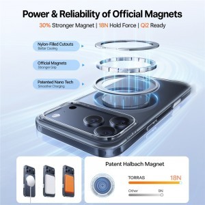 - 30%-kal erősebb mágnesek: A beépített, hivatalos mágnesek 30%-kal erősebb tapadást biztosítanak (18N tartóerő), mint a hagyományos MagSafe tokok, így a kiegészítők stabilabban rögzülnek.