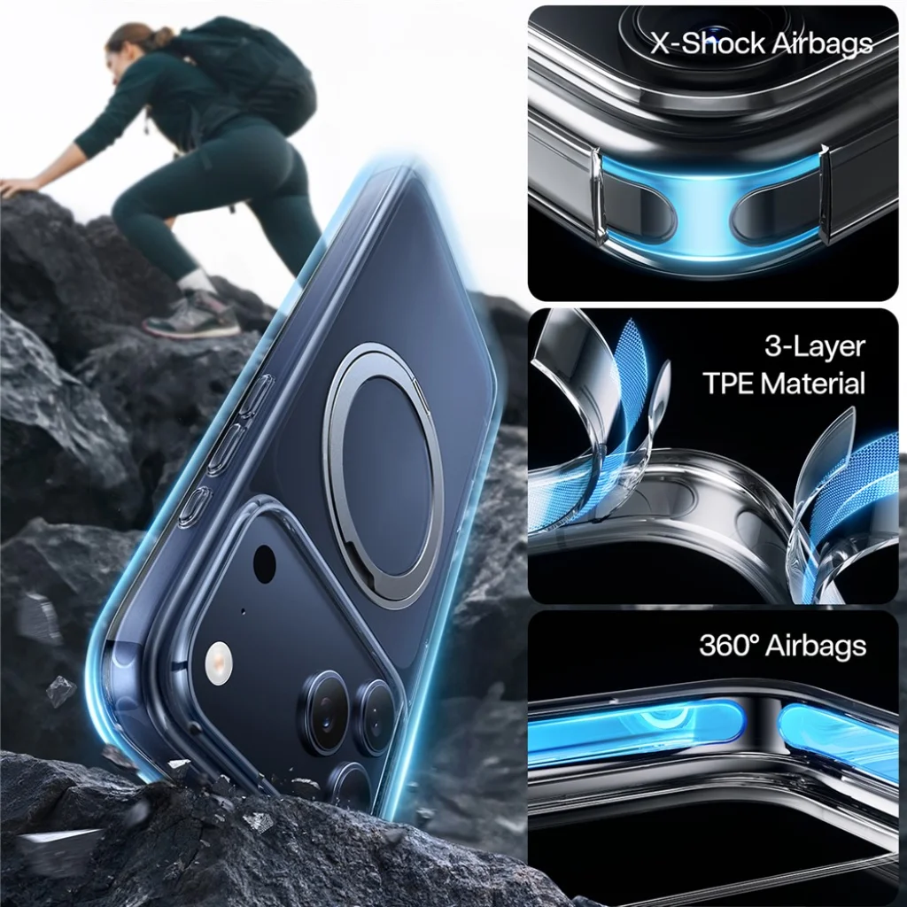 - 360°-os légzsákos védelem: Az átfogó légzsákrendszer minden oldalról óvja telefonját a véletlen leejtések és ütések ellen.