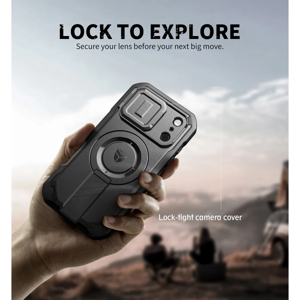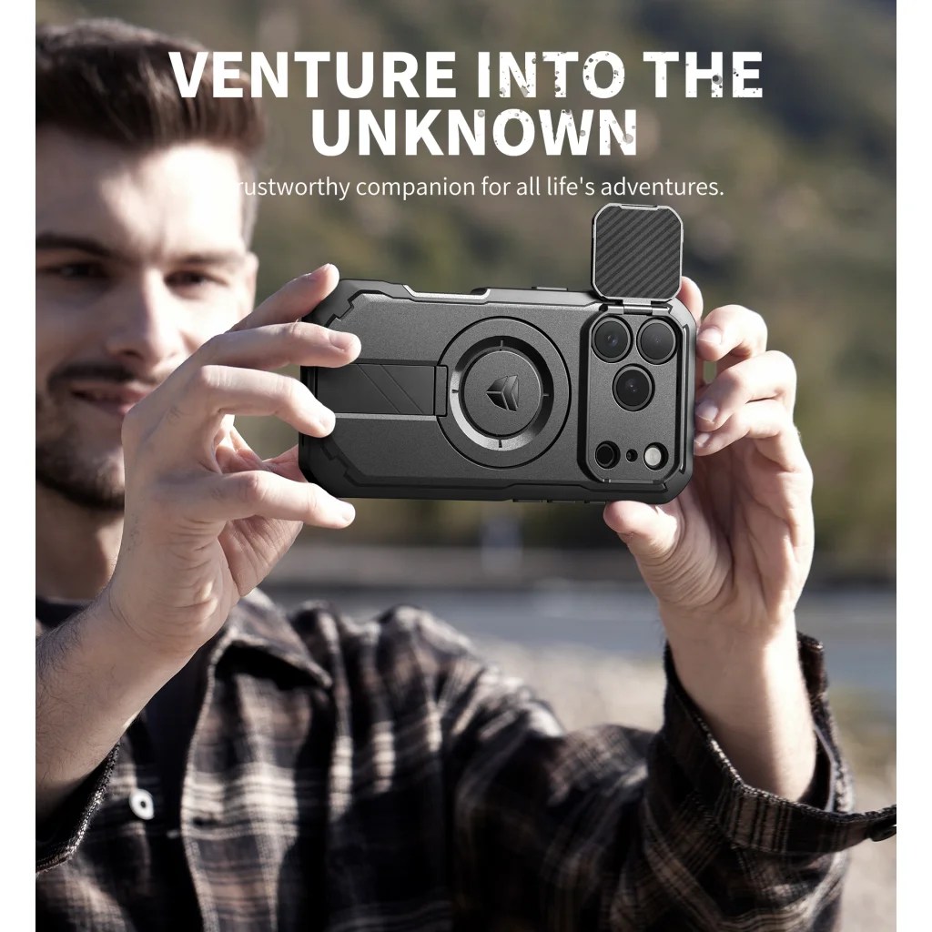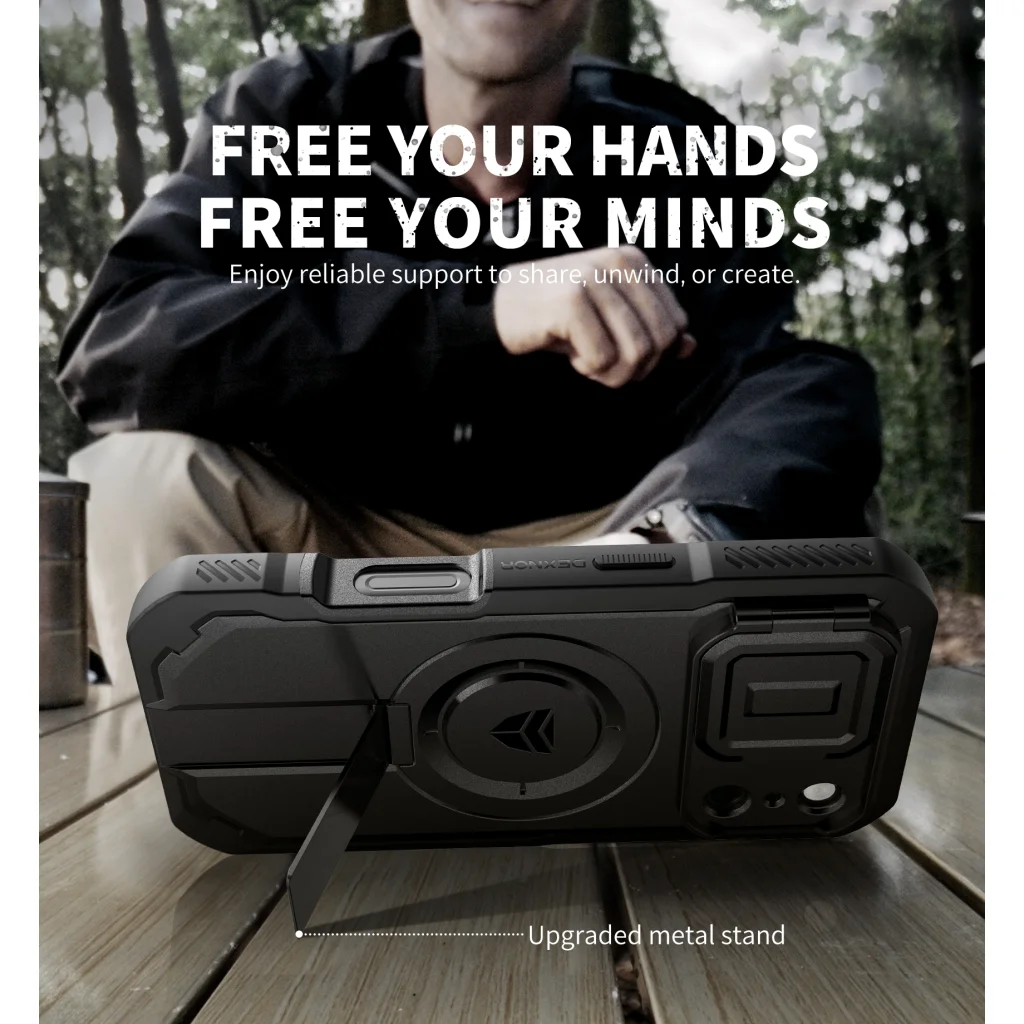 Védje iPhone 17 Pro készülékét a Dexnor MagSafe kompatibilis ütésálló tokkal, amely a legmagasabb szintű védelmet nyújtja, miközben maximális funkcionalitást biztosít. Ez a fekete tok egyedi kialakításával nemcsak ellenáll a mindennapi ütéseknek és karcolásoknak, hanem beépített kihajtható fém állvánnyal és zárható kameravédővel is rendelkezik, hogy készüléke mindig biztonságban és készen álljon a használatra.