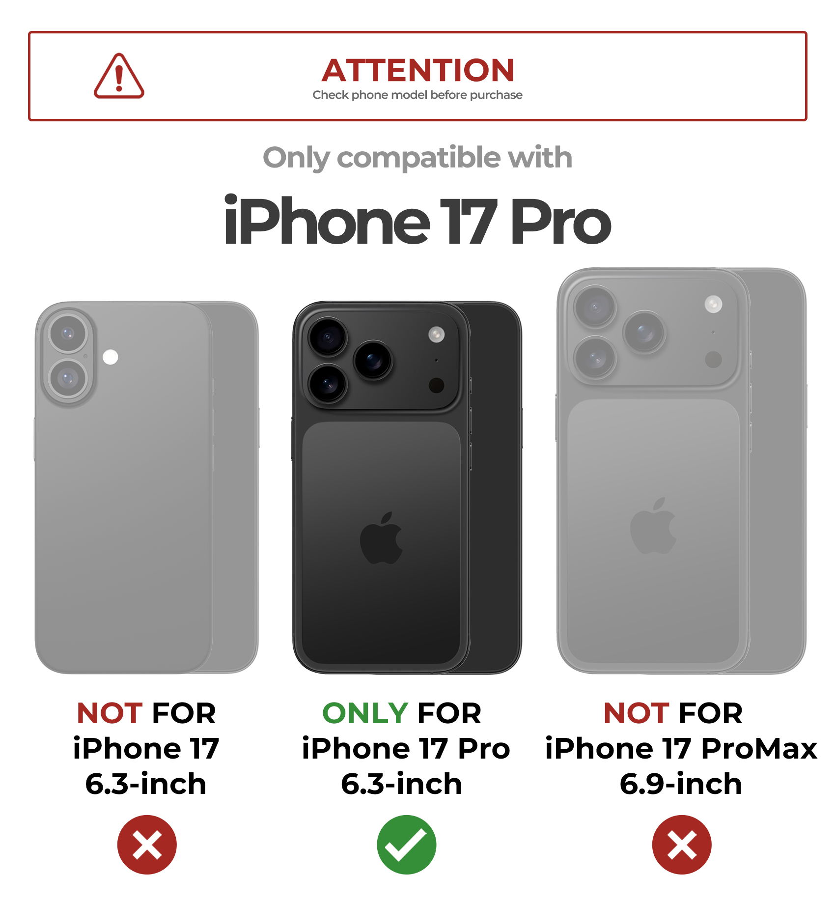 Kérjük, vásárlás előtt ellenőrizze telefonja modelljét! Ez a Dexnor tok kizárólag az iPhone 17 Pro 6.3-inch modellhez készült.