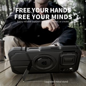Védje iPhone 17 Pro készülékét a Dexnor MagSafe kompatibilis ütésálló tokkal, amely a legmagasabb szintű védelmet nyújtja, miközben maximális funkcionalitást biztosít. Ez a fekete tok egyedi kialakításával nemcsak ellenáll a mindennapi ütéseknek és karcolásoknak, hanem beépített kihajtható fém állvánnyal és zárható kameravédővel is rendelkezik, hogy készüléke mindig biztonságban és készen álljon a használatra.