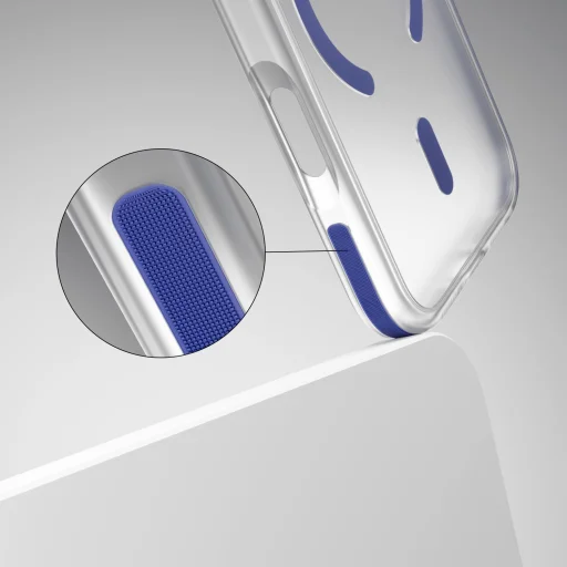 Az Etteri Icy Mag tok hátulján matt bevonat található, amely hatékonyan minimalizálja az ujjlenyomatokat. A burkolat finoman textúrált felülete optimalizálja a fogást, biztosítva, hogy az eszköz biztonságosan a kézben maradjon. A szélek különleges csúszásmentes bevonattal vannak ellátva, csökkentve a véletlen csúszás kockázatát a napi használat során. Figyelemfelkeltő fém és színes részletek eleganciát és egyedi karaktert adnak.
