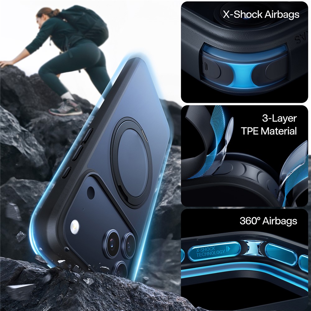 - X-Shock légpárnák és 360°-os védelem: A tok sarkai és oldalai X-Shock légpárnákkal vannak megerősítve, amelyek elnyelik az ütéseket és rázkódásokat esés esetén. A 360°-os légpárnás technológia teljes körű védelmet biztosít a telefonodnak.