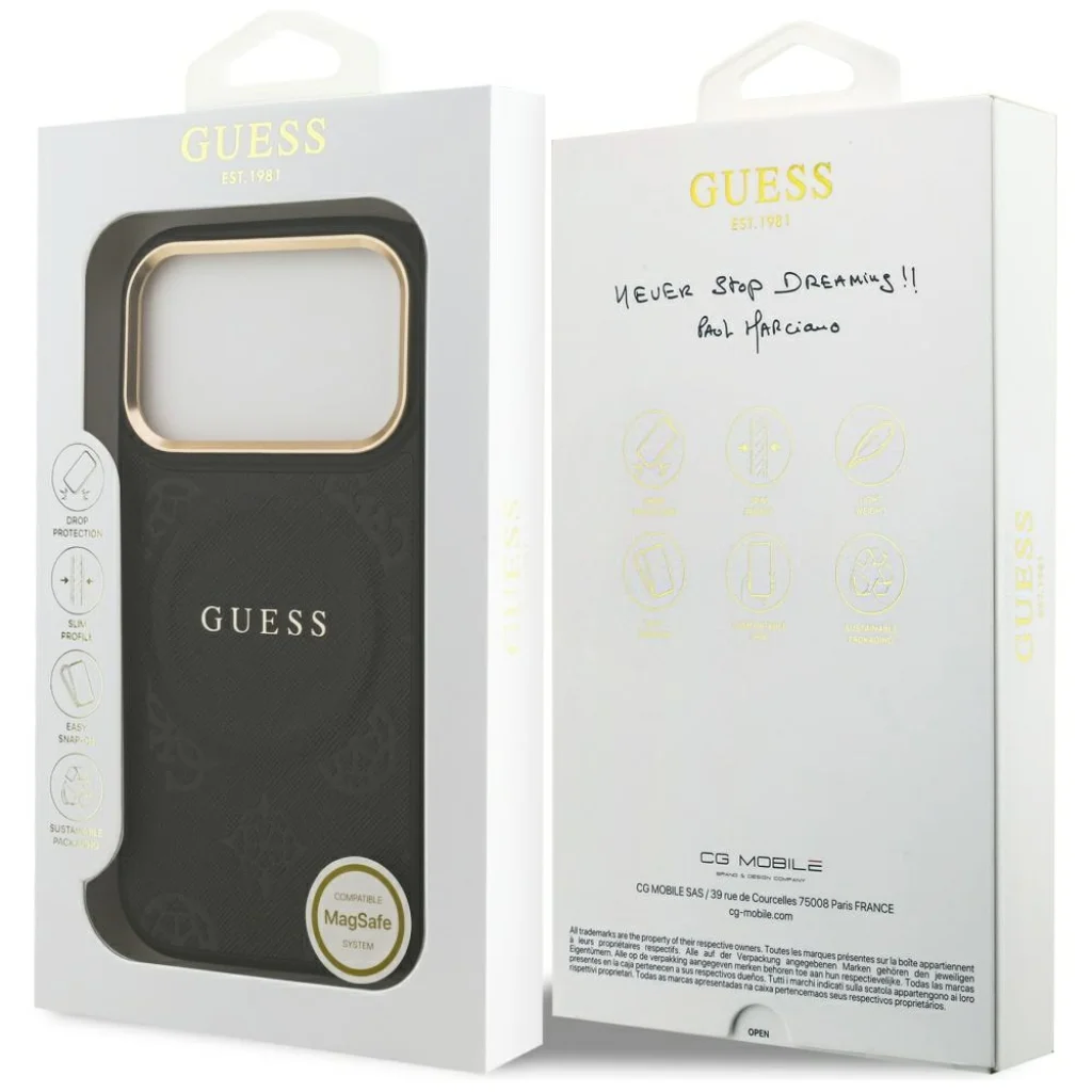 Vezeték nélküli töltésre is alkalmas! A tokba beépített mágnesgyűrű kompatibilis a MagSafe vezeték nélküli töltővel, gyors és egyszerű töltést biztosítva. A beépített mágnesek tökéletesen illeszkednek a felhasználó telefonjához és erős tapadást biztosítanak a MagSafe töltőhöz. A tok Guess márkájú licenc alatt készült.