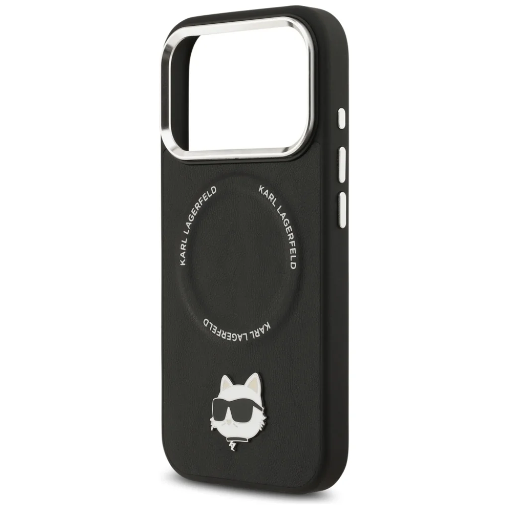 A tok igazi fénypontja a napszemüveges Choupette 3D-s fémpinje, amely játékos, mégis kifinomult módon egészíti ki a Karl Lagerfeld örökségét. Ez a részlet azonnal felismerhetővé teszi a tokot, és egyedi karaktert ad iPhone 17 Pro készülékének.
