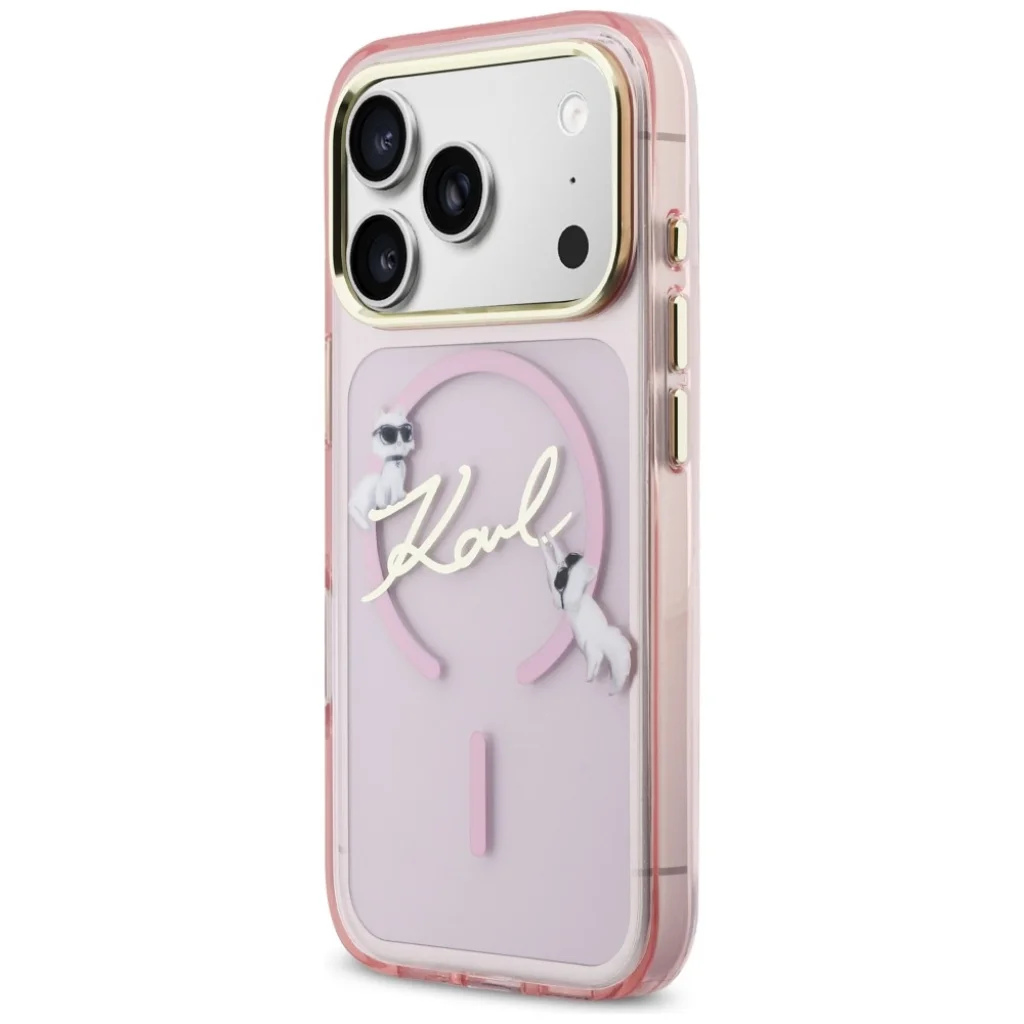 Kiemelkedő stílus és prémium védelem egyben – fedezd fel az iPhone 17 Pro Karl Lagerfeld IML Choupettes Karl Script Logo MagSafe tokot áttetsző rózsaszínben, amely tökéletes kiegészítője telefonodnak és személyiségednek!