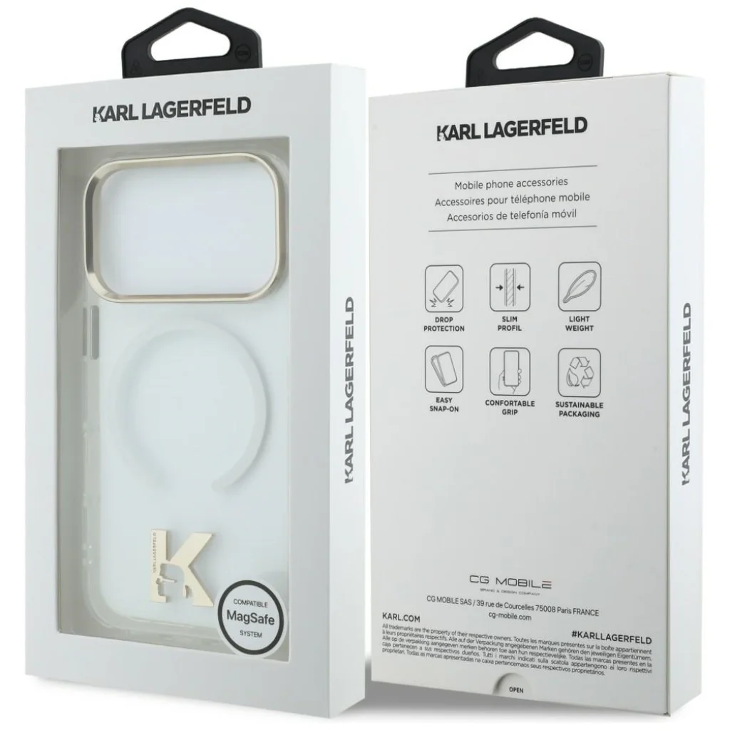 A Karl Lagerfeld, a divatvilág ikonikus neve, most az iPhone 17 Pro készüléked számára is kínálja a kifinomult eleganciát és a prémium védelmet. Ez az átlátszó IML K Head Logo MagSafe kompatibilis tok tökéletes választás azoknak, akik stílusosan szeretnék óvni készüléküket, anélkül, hogy elrejtenék annak eredeti szépségét. A tok visszafogottan luxus megjelenésű, a modern technológiát és a klasszikus design elemeket ötvözve.