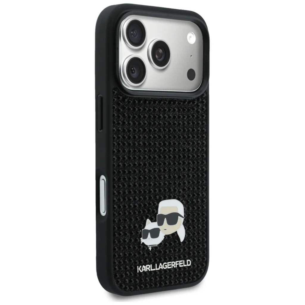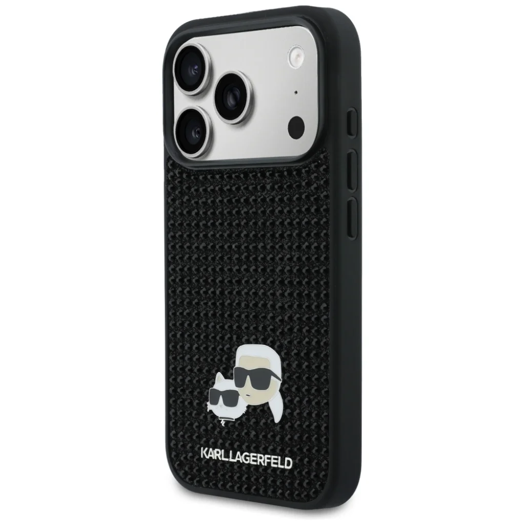 A Rhinestones Karl&Choupette Pin kollekció az elegancia és luxus kombinációja. A tokot strasszok díszítik, felületén pedig egy pin ábrázolja Karl Lagerfeldet és kedvenc macskájukat, Chouppette-et. A tok alján egy finom KARL LAGERFELD logó található, amely teljessé teszi az egész dizájnt.