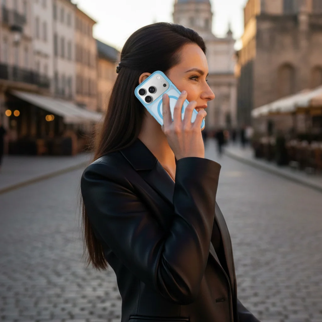 Tel Protect Aura Matte MagSafe tok – matt, félig átlátszó tok hibrid védelemmel Modern, minimalista tok, amely rugalmas TPU oldalakat és tartós PC hátlapot ötvöz. A hátlap matt és félig átlátszó, tiszta, könnyed megjelenést kölcsönöz a tok számára, miközben megbízható, mindennapi védelmet nyújt. A beépített mágneses gyűrű biztosítja a MagSafe-kompatibilitást, a dedikált pántkivágások pedig megkönnyítik a szíj rögzítését a megnövelt biztonság érdekében.