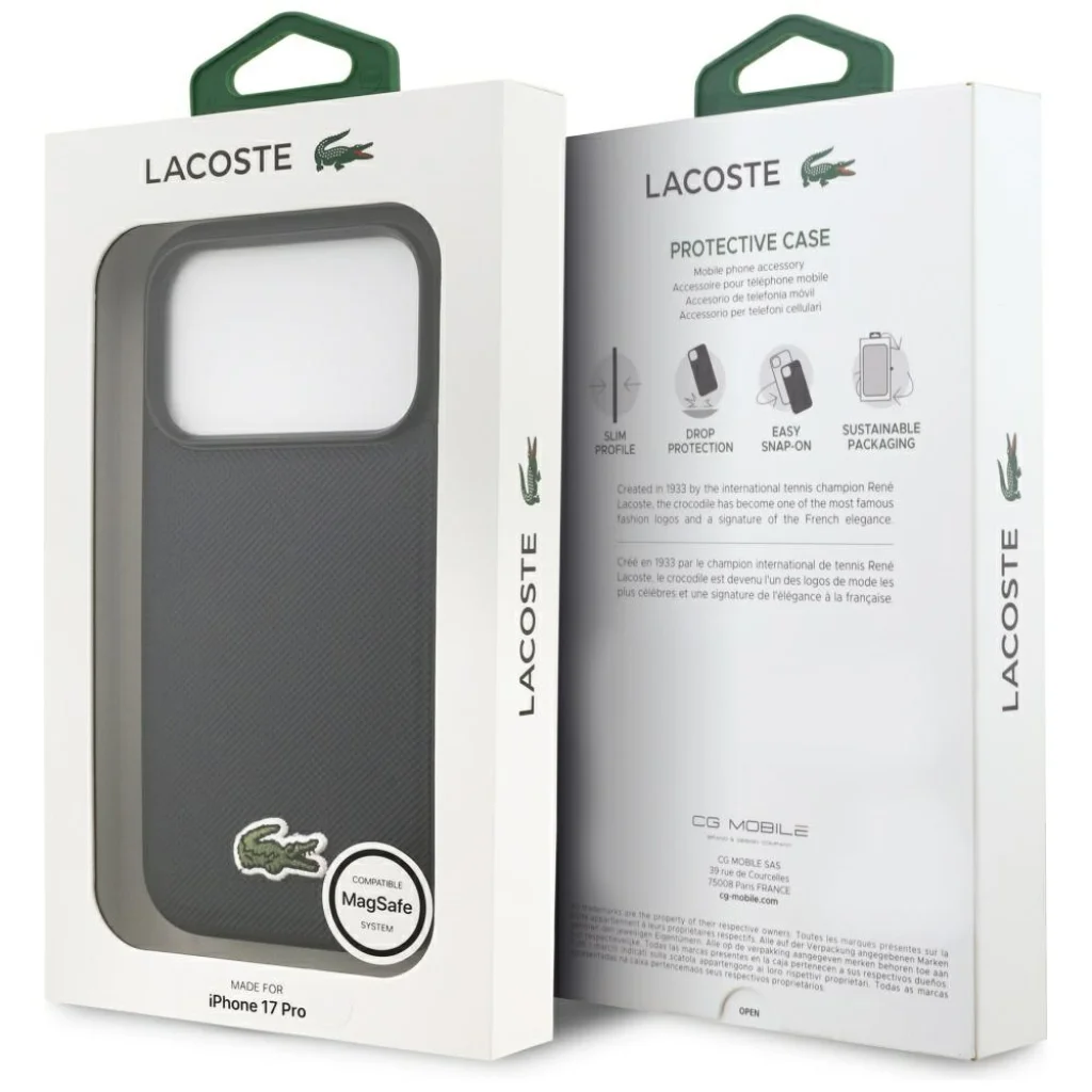 A Lacoste ikonikus, elegáns és sportos stílusának legújabb védőtok kollekciója nemcsak egyedi stílusával és lenyűgöző funkcionalitásával, hanem mindenekelőtt megbízható védelemével emelkedik ki értékes készüléked számára. Az érdekes textúrájú tok látványos megjelenést és kellemes tapintási élményt nyújt, amely biztonságos fogást és kényelmet biztosít a felhasználónak. A kollekció a jól ismert krokodil motívummal díszített, amely tökéletesen tükrözi a Lacoste márka szellemiségét. Az tokok a legmagasabb minőségű anyagokból készültek, például erős polikarbonátból és puha tapintású poliuretánnal bevonva. Rugalmas oldalaik könnyű és gyors felszerelést tesznek lehetővé. A beépített mágnesek kompatibilisek a MagSafe vezeték nélküli töltővel, gyors és egyszerű töltést biztosítva. A tokok a Lacoste márka licensze alapján készülnek.
