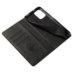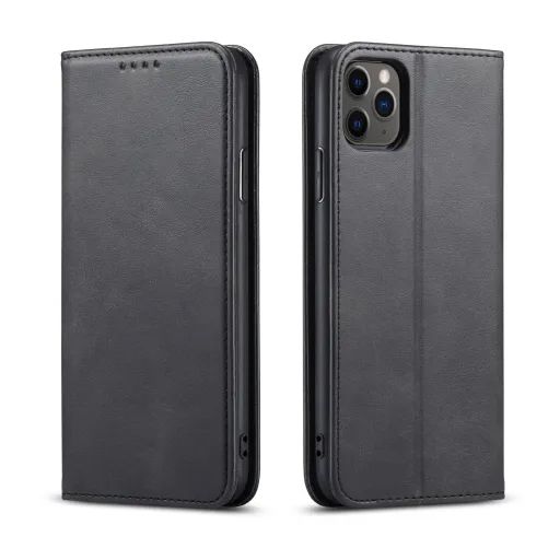 iPhone 17 Pro mágneses PU bőr fliptok kártyatartóval pánt nélküli fekete Alphajack