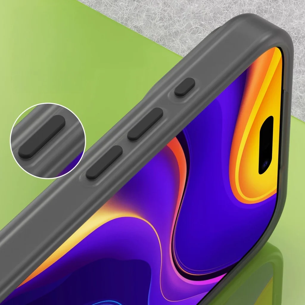 - Tartós, kétrétegű szerkezet: A rugalmas TPU elnyeli a rázkódásokat, míg a merev PC merevíti az egészet, és megvédi a telefont a nyomástól és ütődésektől.