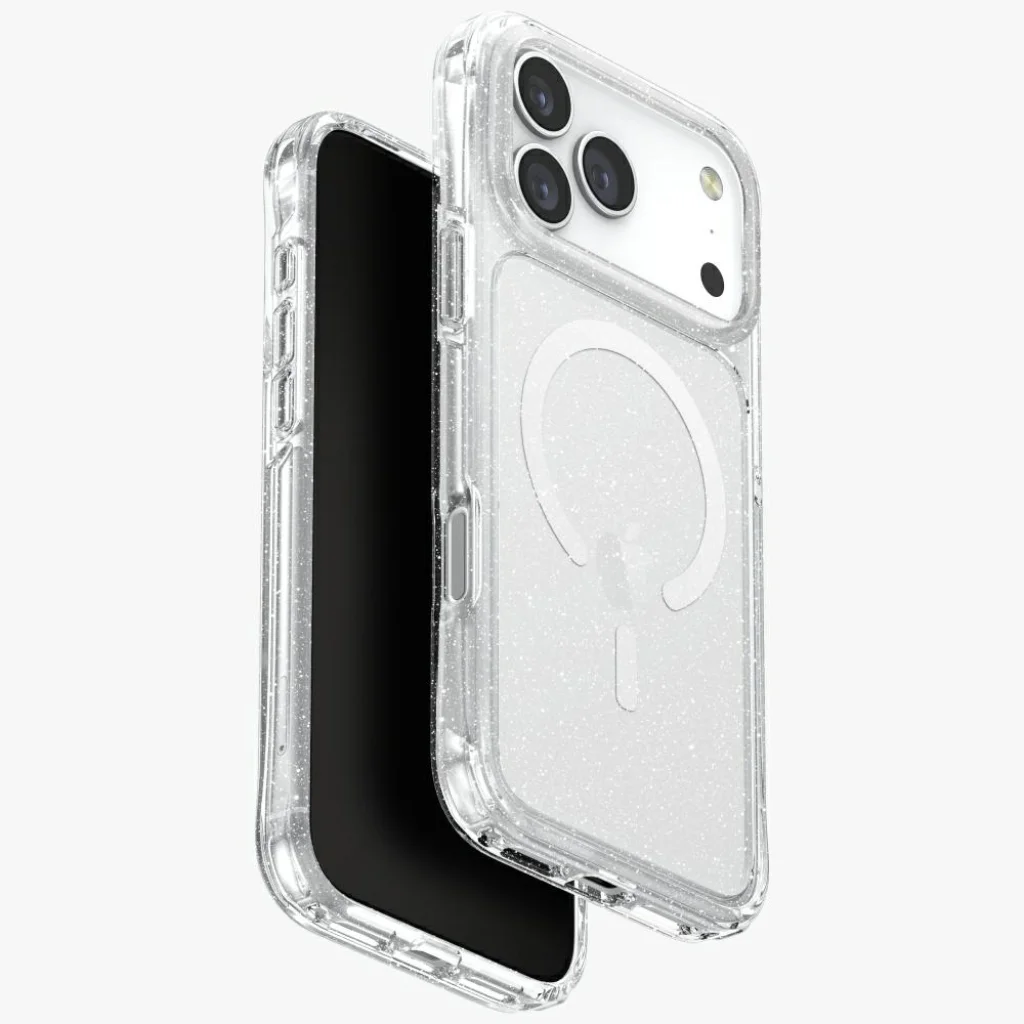 A Uniq LifePro Xtreme Magclick töltős tok a Uniq márka alkotása, amely eleganciát, funkcionalitást és modern technológiát ötvöz a mobil eszközök védő kiegészítőinek létrehozásában. A Uniq termékekre jellemző a precíz kidolgozás, a kiváló minőségű anyagok és a részletekre való odafigyelés. Nemcsak kivételes védelmet nyújtanak, hanem dizájner megjelenésükkel kiegészítik a modern eszközök esztétikáját. Tokjaik és kiegészítőik a stílus és a megbízhatóság tökéletes egysége, biztosítva a legmagasabb szintű biztonságot. PRECÍZ ILLESZKEDÉS ÉS TELJES FUNKCIONALITÁS A tokot a modern felhasználók kényelme érdekében tervezték, ötvözve a funkcionalitást a kivételes ergonómiával. Ultra-vékony kialakítása a telefont karcsúvá és kényelmessé teszi a kézben. Az egyszerű összeszerelhetőség és szétszerelhetőség révén a tok könnyen használható, miközben teljes hozzáférést biztosít minden csatlakozóhoz és gombhoz, lehetővé téve a készülék kényelmes használatát. MAGAS MINŐSÉGŰ ANYAGOK A Uniq LifePro Xtreme Magclick Charging tok magas minőségű anyagokból készült, amelyek kiváló védelmet nyújtanak a telefon számára. A polikarbonát hátlap megvédi a készülék hátulját a karcolásoktól. A képernyő és a kameraburkolat körüli enyhén megemelt élek megvédik a telefont a karcolásoktól, míg a rugalmas és puha oldalak gyors és egyszerű telepítést tesznek lehetővé. 4-pontos ütéselnyelő megerősítés védi a képernyő leejtésekor történő közvetlen ütéstől. Töltsd a telefonod vezeték nélkül! A tok mágneses gyűrűt tartalmaz, amely kompatibilis a MagClick induktív töltőkkel, biztosítva a gyors és egyszerű töltést. A beépített mágnesek tökéletesen illeszkednek a felhasználó telefonjához, és erős kapcsolatot biztosítanak a készülék és a töltő között. Technikai adatok Márka Uniq Kollekció LifePro Xtreme Magclick Charging Típus Keménytok Anyag TPU Szín Áttetsző / csillámos Kompatibilitás iPhone 17 Pro Max